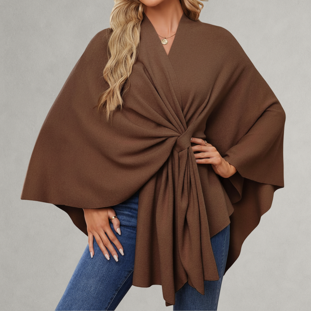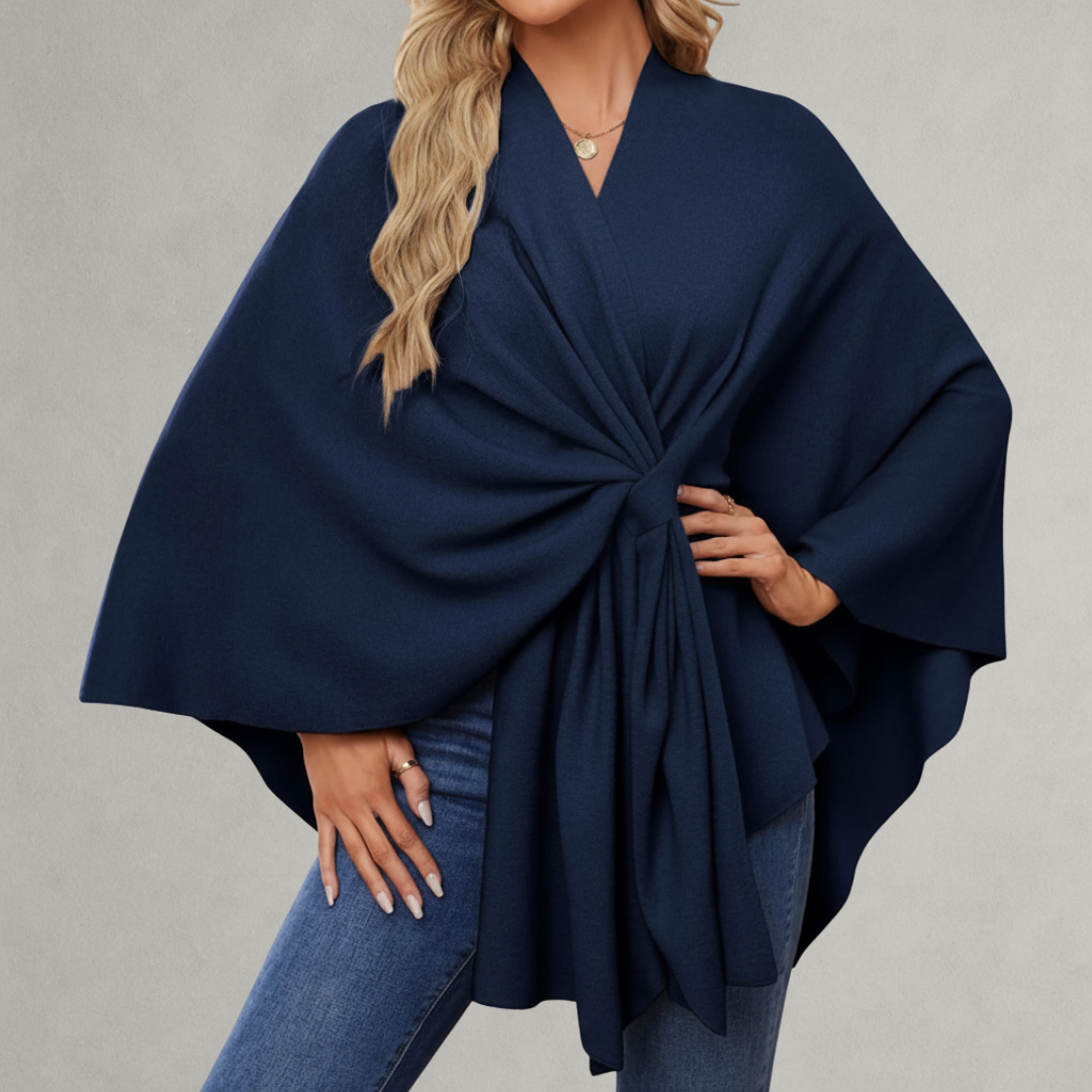 Il poncho ha una vestibilità universale e si adatta facilmente a diverse silhouette. È pensato per valorizzare ogni fisicità senza bisogno di scegliere una taglia specifica